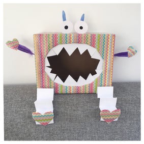 Het cadeautje kan via een luikje aan de onderkant in de surprise worden gedaan.
